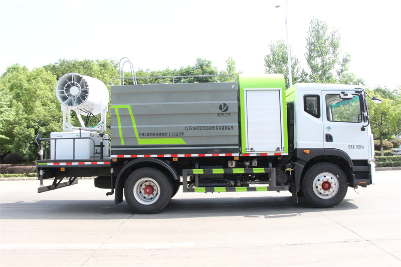 1.灑水車產品簡述:縱昂牌 CLT5181TDYEQ6A 型多功能抑塵車標配前噴(鴨嘴)、后 對沖、后灑、側噴、后置式工作平臺,平臺上配置綠化水炮(可 360°旋轉,既 可以調成柱狀,也可以調成霧狀),配備優質大功率專用灑水泵(可自吸自排, 可從河里或池塘抽水到罐體),取力器,雜物過濾網,消防接口,自流球閥系統、 取力器、球閥、濾網均為國家標準產品,主管道加粗,法蘭墊、法蘭盤加厚, 大通徑球閥。整體具備性能優良安全可靠、效率高、流量大、維修方便等特點。