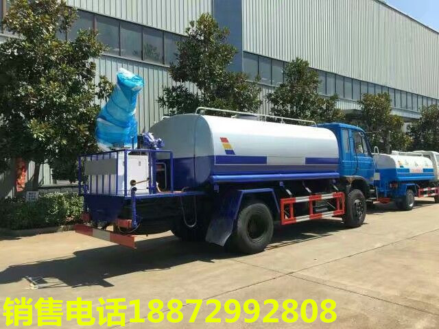 隨底盤選裝駕駛室;品名:水;密度:1000千克/立方米;有效容積:14.7立方米;外形尺寸長(mm)/軸距(mm)/后懸(mm)/罐體尺寸(長×長軸×短軸)(mm)對應關系吸程≧7米,灑水寬度≧14-16米,射程≧25-30米,引水時間<5min,流量60m3/h。前沖(噴)、后灑、帶側噴(花灑)、帶后工作平臺、平臺上安裝綠化灑水高炮(炮噴射形狀可調節:直沖、大雨、中雨、毛毛雨、霧狀、可連續調節,360°旋轉),配消防接口,自流閥,濾網,帶自吸自排功能。。