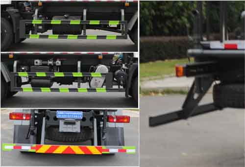 ABS型號:3631010-C2000;ABS生產企業:東科克諾爾商用車制動系統(十堰)有限公司;選裝描述:隨底盤選裝駕駛室;側后防護情況:側、后防護材料均為:Q235碳鋼,連接方式均為:螺栓連接,后部防護截面尺寸(mm):120×50,后部防護離地高度(mm):495;罐體總容量:9立方米;罐體有效容積:8.57立方米;罐體外形尺寸(長×長軸×短軸)(mm):4400×2300×1300,4200×2350×1300;專用功能及裝置:該車主要用于城鄉園林綠化噴灑,噴藥;主要裝置為水罐及噴灑裝置;選裝側面及后部結構。選裝后部結構時,后防護為專用裝置代替,后防護離地高度為450mm.選裝后部箭頭燈裝置,選裝后部弧形噴灑裝置。選裝擋泥板樣式,選裝油箱及電瓶位置。