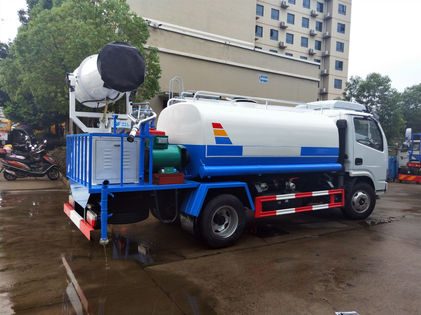 吸程≧7米,灑水寬度≧14-16米,射程≧25-30米,引水時間<5min,流量60m3/h。前沖(噴)、后灑、帶側噴(花灑)、帶后工作平臺、平臺上安裝綠化灑水車高炮(炮噴射形狀可調節:直沖、大雨、中雨、毛毛雨、霧狀、可連續調節,360°旋轉),配消防接口,自流閥,濾網,帶自吸自排功能。 加裝30-40米霧炮,霧炮可以手動操作,可遙控操作,配7千瓦發電機,此車為國五車型,上戶免購置稅