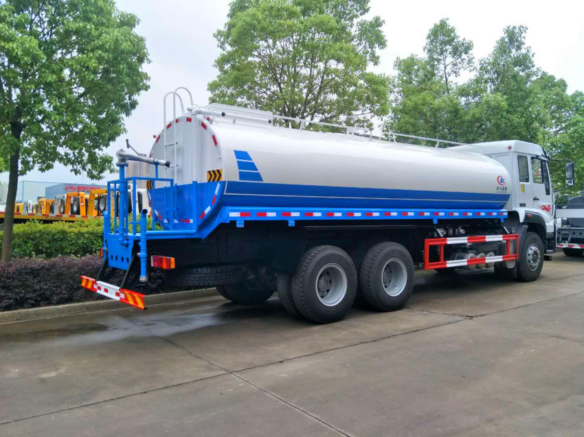 有免征公告,可以免購(gòu)置稅,嚴(yán)格按照公告尺寸生產(chǎn),罐體實(shí)際容積20方,罐體采用國(guó)標(biāo)武鋼碳鋼板材制作,帶泵,可泵進(jìn)泵出,帶前沖、后灑、側(cè)噴,后工作平臺(tái)帶綠化高射炮。平臺(tái)上安裝鋼制芯專(zhuān)用大功率綠化灑水高炮(炮有直流狀、大雨、毛毛雨、霧狀可調(diào)節(jié),可噴灑農(nóng)藥),配備大功率專(zhuān)用灑水泵,帶消防接頭,帶自流閥,帶自吸功能。同時(shí)可以用于臨時(shí)應(yīng)急消防灑水,每輛灑水車(chē)都配備消防專(zhuān)用接口。由發(fā)動(dòng)機(jī)帶動(dòng)變速箱,變速箱上安裝的取力器帶動(dòng)灑水泵,灑水泵產(chǎn)生主要?jiǎng)恿Γ瑢⒐摅w內(nèi)部的液體通過(guò)管網(wǎng)噴灑出去。自吸高度:≤7m,灑水寬度:≥20m,最大射程:≥28m;可調(diào)節(jié)成柱狀,射程≥28m;也可調(diào)節(jié)成霧狀,射程≥15m。前噴后灑,前裝有鴨形噴嘴或圓頭沖嘴,后面裝有圓柱開(kāi)灑水噴嘴或蓮蓬頭噴嘴,后部有一工作平臺(tái),裝配有高壓水炮。后部還可裝8個(gè)噴嘴(選裝)噴水器一般用于沖洗街道。可選配藥盤(pán)、打藥機(jī)。也可加裝藥盤(pán)、藥泵、罐內(nèi)防腐防銹、多方位進(jìn)出水接頭、電磁閥、氣動(dòng)閥等先進(jìn)設(shè)施,以滿足不同用戶(hù)需求。