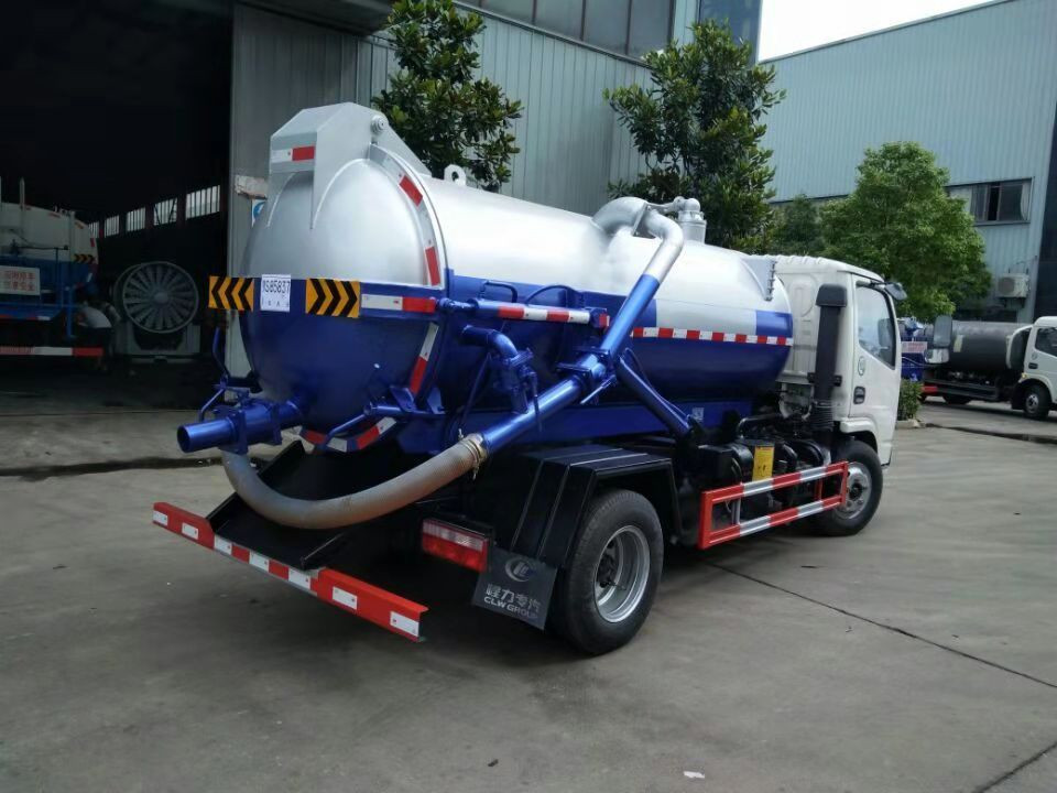 上裝配置:取力器,傳動(dòng)軸,真空吸污泵,壓力罐體,液壓部件,管網(wǎng)系統(tǒng),壓力表,視污窗、洗手裝置。罐體封頭一次壓鑄成型,罐體可后開(kāi),帶自卸功能。罐內(nèi)污物可通過(guò)后蓋直接傾倒。