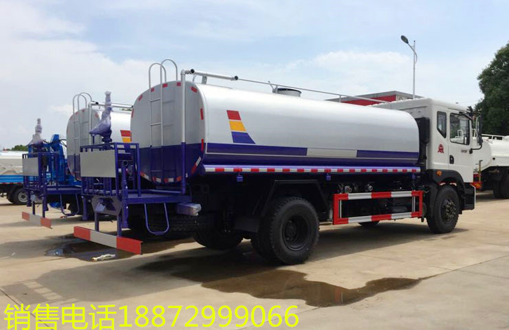 改裝配置:罐體用4MM碳鋼板制作,罐內(nèi)隔板具有防波作用,以減低汽車行駛時罐體液體的沖擊。整車帶一個專用灑水泵(垂直最大吸程6米),灑水寬度14米,射程28米。多功能灑水車配備2個前沖(噴)(能將路面泥巴、塵土、垃圾沖干凈);2個后灑(能均勻地將水灑在路面,一次灑水寬度14米)、2個側(cè)噴(花灑)(能均勻地將路旁綠化帶澆灌)、帶1個后工作平臺,平臺上安裝1個綠化灑水高炮(灑水炮可全方位旋轉(zhuǎn),可連續(xù)調(diào)成直沖狀、大雨、小雨、毛毛雨,霧狀可調(diào)節(jié)沖洗高大樹木),引水時間<5min,流量90m3/h。帶1個消防接頭,帶1個自流閥,1個過濾裝置、人性化爬梯及側(cè)防護欄,安裝灑水音樂喇叭。