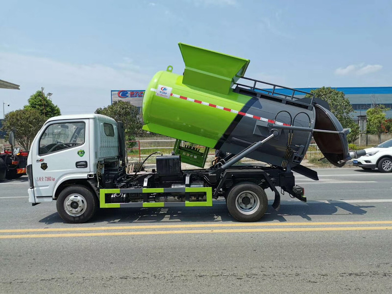 上裝配置:容‌積4立‌方,罐體采用優質碳鋼板材,罐體內部帶固液分離功能(全推推板,不銹鋼泔水分離網板),罐內加熱功能(用于嚴寒地帶防止罐內餐飲垃圾凍結凝固,采用柴油燃燒機加熱,加熱速度快效果好,可設置高低溫實現自動溫控)全液壓操作系統,工作人員操作方便,罐體舉升自卸,拉桿式掛桶提升機,可以掛120/240升垃圾桶進行作業,后蓋液壓驅動開啟、鎖緊,方便人員操作