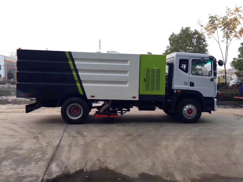 采用國三或國五底盤,液壓方向助力,消防管/人工輔助吸管,全自動脈沖清灰裝置,行車和駐車自動除塵裝置,垃圾箱卸料高效噴淋降塵系統,吸塵發動機吸污車采用無極變速技術自動離合器技術。