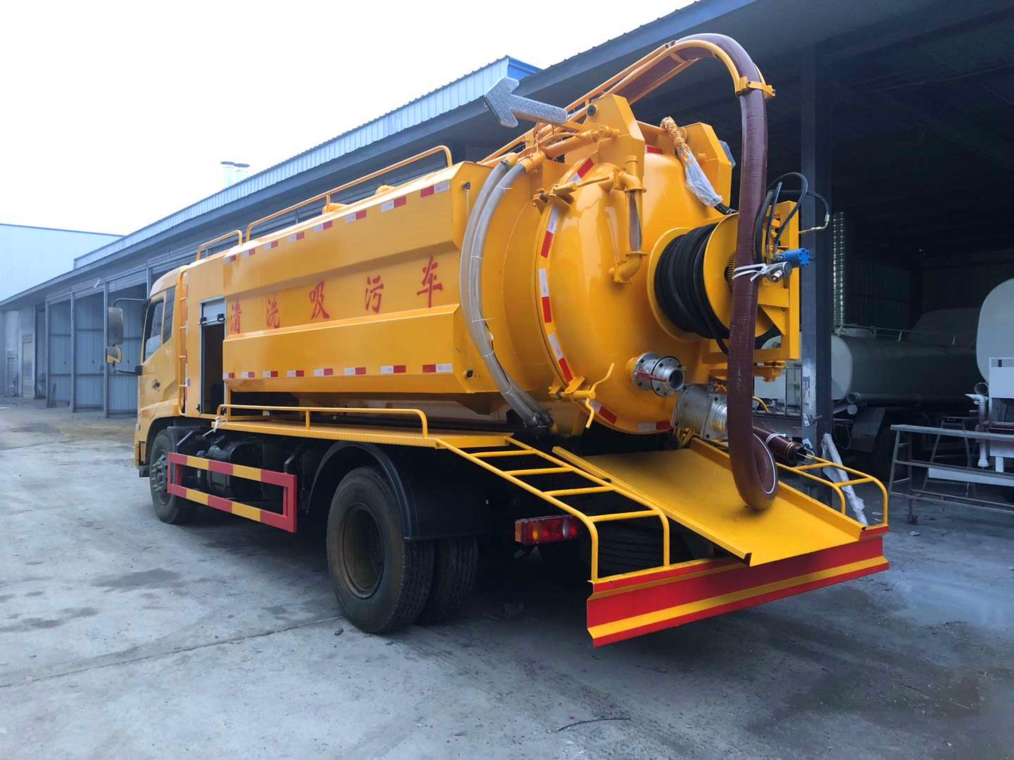 高壓清洗車也稱之為管道疏通車,通過高壓水流產生的強大壓力沖開被堵塞的管道。主要組成部分為罐體、高壓泵、液壓系統等。高壓清洗車主要用于清洗城市下水道、管道的沉積物、死角泥溝的疏通,也可用于清洗工業排液管道、壁面等,清洗公路、廣場地面。