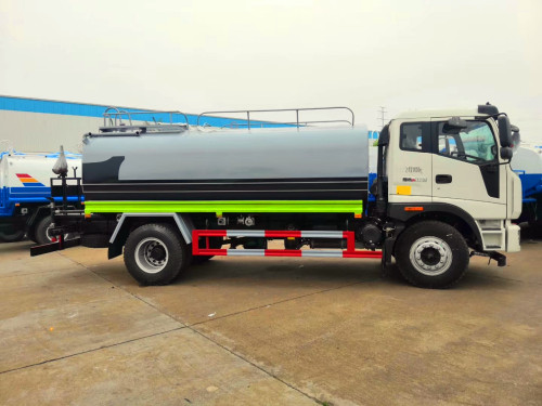 上裝配置: 國內三家灑水車生產流水線,其中一條在我公司。罐體由國標5mm厚優質碳鋼板一次性卷壓成型,二保焊行走小車自動焊接,焊縫均勻、美觀,避免了人工焊接的漏焊和虛焊,罐體內部加固處理,并設置防浪板,罐體內外做防銹處理,標配前沖、后灑、側噴、后置式工作平臺,平臺帶踏梯,四周有安全護欄,平臺上設有高壓水炮,可360°旋轉,可調成:直沖狀、大雨、中雨、小雨、毛毛雨。3950軸距及以上車型標配高位花灑功能。