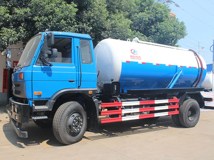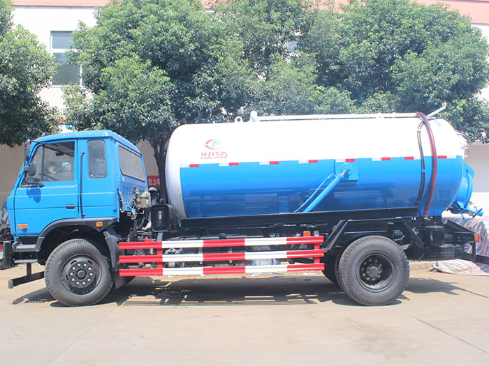 吸污車專用部分由取力器、傳動軸、真空吸污泵、壓力罐體、液壓部分,管網(wǎng)系統(tǒng)、真空壓力表、視糞窗、洗手裝置等組成,隨車配置大功率真空吸污泵和優(yōu)質(zhì)液壓系統(tǒng),罐體封頭一次壓鑄成型、罐體可后開、雙頂自卸。罐內(nèi)污物可通過后蓋直接傾倒,具有真空度高(比吸糞車的吸力更大)、噸位大、效率高、用途更廣泛的特點。