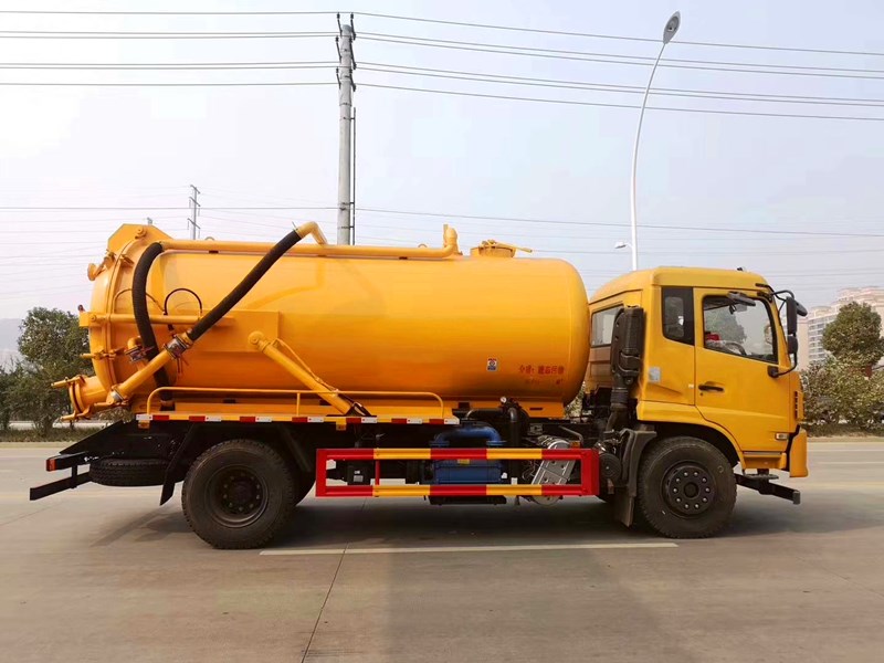 東風多利卡(國5)專用吸污車 主要由取力器、傳動軸、真空吸污泵、壓力罐體、液壓部分,管網系統、真空壓力表、視糞窗、洗手裝置等組成,隨車配置大功率真空吸污泵和優質液壓系統,罐體封頭一次壓鑄成型、罐體可后開、雙頂自卸。罐內污物可通過后蓋直接傾倒,具有真空度高(比吸糞車的吸力更大)、噸位大、效率高、用途更廣泛的特點。