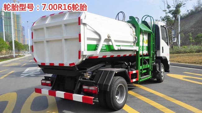 垃圾車標(biāo)準(zhǔn)配置介紹:該車最主要的優(yōu)點(diǎn)就是可一車配多桶,收集方式簡(jiǎn)便、高效、環(huán)保性好(不產(chǎn)生二次污染),舉升油缸(2支)系國(guó)內(nèi)知名液壓件廠家生產(chǎn)的雙作用油缸;箱體為密封式結(jié)構(gòu),在箱體前部設(shè)有進(jìn)料箱蓋,側(cè)面設(shè)有自裝料裝置,箱體后部設(shè)有卸料門。垃圾桶自裝卸裝置(掛桶提升機(jī)構(gòu))設(shè)在箱體的前部側(cè)面,由支架、油缸、鏈條結(jié)構(gòu)、吊鉤等組成。此裝置可將外部垃圾桶內(nèi)的垃圾提升裝入箱體內(nèi)。