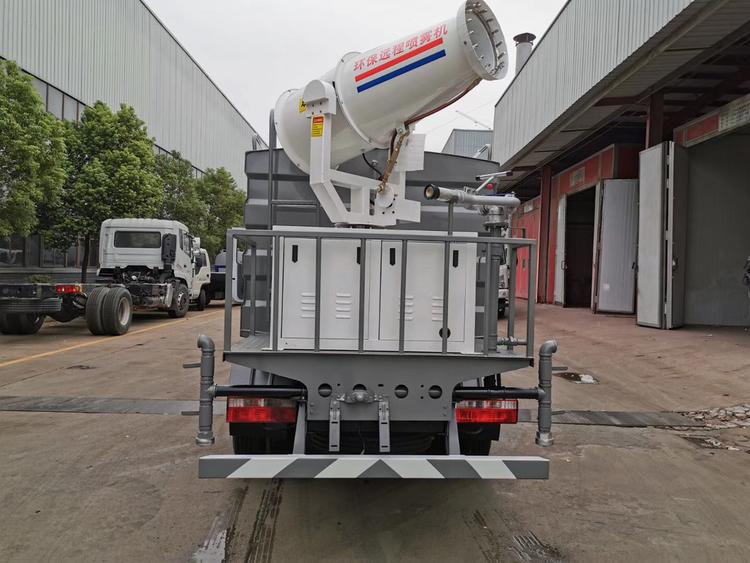 東風(fēng)5噸灑水抑塵車,云內(nèi)95匹馬力發(fā)動(dòng)機(jī) 5檔變速箱,700-16輪胎,罐體采用武鋼優(yōu)質(zhì)鋼材制作,專用功能為:前沖后灑,帶側(cè)噴,罐體后帶工作平臺(tái),平臺(tái)上安裝綠化灑水高炮,帶專用灑水車水泵,帶自流閥,帶消防接頭,加裝30型霧炮,帶8千瓦柴油發(fā)電機(jī)組,霧炮可以遙控操作