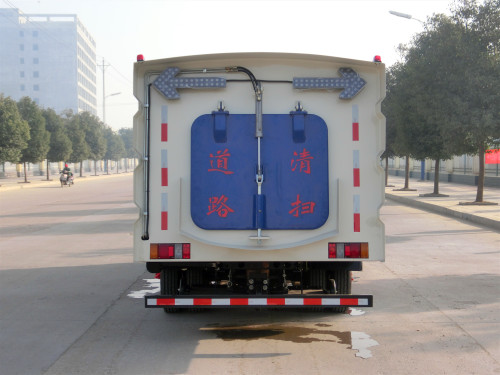 清掃方式: 采用4掃盤與吸盤混合的方式收集垃圾,洗掃能力卓越,兩側掃把可同時工作,也可單側獨立工作。濕式除塵、電液控制,液壓傾翻卸料的作業方式對路面進行清掃作業。清掃結構簡潔可靠,帶避讓防撞功能.