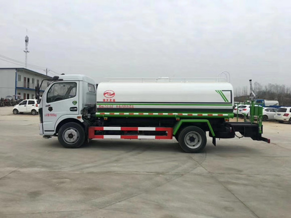 國六8噸灑水車上裝配置:罐體采用 4mm 厚專用容積板制作,實際容積 5 立方,前沖、后灑、側噴,后工作平臺及綠化高炮,配灑水車專用水泵,泵進泵出及消防栓接口,兩根等長輸水管,金屬烤漆,其余標配。