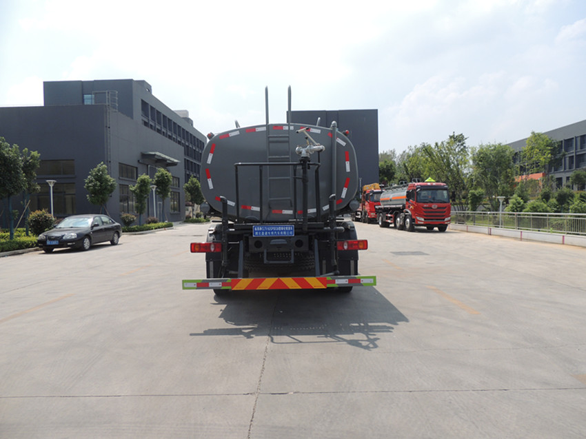 罐體灑水車罐體結構,罐體為橢圓形或方形,用鋼板制成,整車罐體水倉為2-3室,中間隔板下端有通孔,倉內隔板具有防波作用。以減低汽車行駛時罐內液體的沖擊。外表涂防銹漆及裝飾漆。