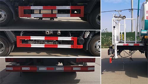 ABS生產(chǎn)企業(yè):浙江萬安科技股份有限公司;側(cè)后防護(hù)情況:左右側(cè)防護(hù)及后下部 防護(hù)裝置均采用Q235B材質(zhì),均采用焊接連接,后下部防護(hù)尺寸:50×120(mm),離地面高度420mm; 罐體有效容積(立方米)、罐體外形尺寸(mm):4.17立方米、3000×1700×1150,3300×1600×1100; 專用功能及裝置:專用裝置:罐體;主要用于路面灑水及園林綠化;其他說明:整車長/后懸對應(yīng)關(guān)系為(mm): 6500/2060,5950/1510;選裝外形結(jié)構(gòu)。隨底盤選裝駕駛室,選裝管道箱及后部噴霧機(jī)結(jié)構(gòu)。 |
