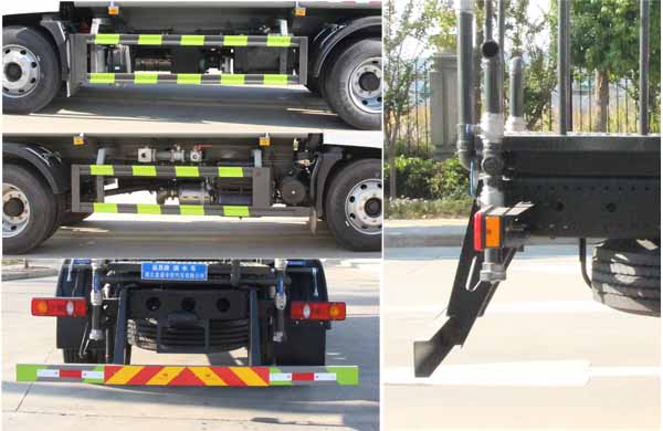 該車主要用于城鄉園林綠化,路面噴灑;主要裝置為罐體及噴灑裝置.罐體總容量:11.55立方米;罐體有效容積:11立方米;罐體外形尺寸(長×長軸×短軸)(mm):4400×2350×1600.ABS型號/生產廠家:3631010-C2000/東科克諾爾商用車制動系統(十堰)有限公司,4460046450/采埃孚商用車系統(青島)有限公司,J ABS/焦作博瑞克控制技術有限公司.側、后防護材料均為:Q235碳鋼,連接方式均為:螺栓連接,后部防護截面尺寸(mm):120×50,后部防護離地高度(mm):470.僅采用底盤3950mm軸距改裝.選裝前部不帶電子霧炮,選裝前部電子霧炮樣式.當前部不帶電子霧炮時,車長7700mm,7800mm,無前伸;當前部選裝電子霧炮時,車長8200mm,8300mm,前伸500mm.隨底盤選裝駕駛室,選裝自動球閥安裝位置,選裝噴灑裝置樣式,選裝后部箭頭燈裝置,選裝弧形噴灑裝置,選裝后部樣式,選裝后部大工作平臺.后部作業燈僅在作業時開啟,車輛行駛過程中不可開啟.