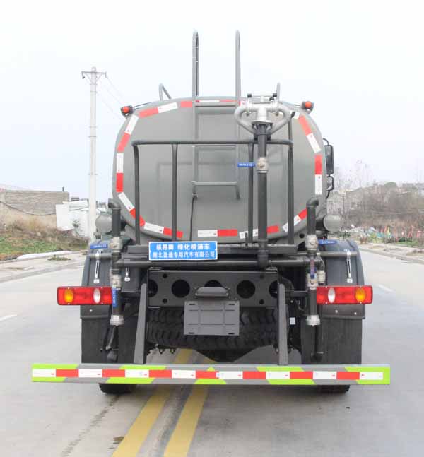 東風5方高端灑水車產品標配前噴(鴨嘴)、后沖、后灑、側噴、后置式工作 平臺,平臺上配置綠化水炮(可 360°旋轉,既可以調成柱狀,也可 以調成霧狀,更可以調成直沖狀、大雨、中雨、小雨、毛毛雨),配 備優質大功率專用灑水泵(可自吸自排,可從河里或池塘抽水到罐體), 取力器,雜物過濾網,消防接口,自流球閥系統、取力器、球閥、濾網 均為國家標準產品,主管道加粗,法蘭墊、法蘭盤加厚,大通徑球閥。 整體具備性能優良安全可靠、效率高、流量大、維修方便等特點。