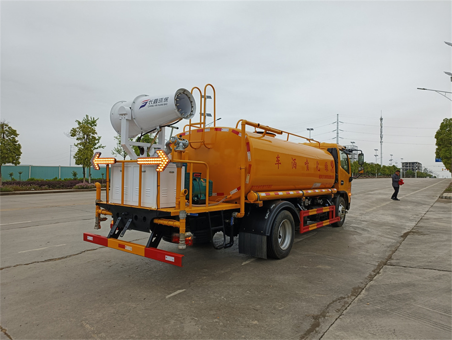 一. 產品簡述 噴霧車又稱為綠化噴灑車、多功能灑水車、園林綠化灑水車。噴 霧車適合于各種路面沖洗,樹木、綠化帶、草坪綠化,道路、廠礦企業 施工建設,高空建筑沖洗。噴霧車也可以作為運水車使用,最常見的 車型有綠化噴灑車、多功能灑水車、綠化灑水車幾大類。 我公司產品標配前噴(鴨嘴)、后沖、后灑、側噴、后置式工作 平臺,平臺上配置綠化水炮(可 360°旋轉,既可以調成柱狀,也可 以調成霧狀,更可以調成直沖狀、大雨、中雨、小雨、毛毛雨),配 備優質大功率專用灑水泵(可自吸自排,可從河里或池塘抽水到罐體), 取力器,雜物過濾網,消防接口,自流球閥系統、取力器、球閥、濾網 均為國家標準產品,主管道加粗,法蘭墊、法蘭盤加厚,大通徑球閥。 整體具備性能優良安全可靠、效率高、流量大、維修方便等特點。