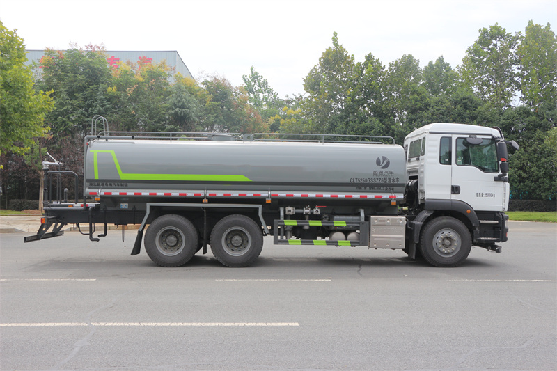 該車主要用于城鄉園林綠化,路面噴灑,除塵和降溫;主要裝置為水罐及噴灑裝置;隨底盤選裝駕駛室,罐體總容量:14.7立方米,罐體有效容積:14立方米;罐體外形尺寸(長×長軸×短軸)(mm):6500×2360×1400;采用軸距(mm):4600+1350,4300+1350;側后防護情況:側、后防護材料均為:Q235碳鋼,連接方式均為:螺栓連接,后部防護截面尺寸(mm):120×50,后部防護離地高度(mm):480;ABS系統控制器生產企業/型號為威伯科(上海)管理有限公司/4460046300;選裝EBS,EBS系統控制器生產企業/型號為威伯科(上海)管理有限公司/EBS3。選裝弧形噴灑裝置,選裝噴灑裝置樣式,選裝水炮支架位置,選裝擋泥板樣式,選裝自動球閥安裝位置。