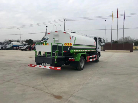 專用配置:罐體容積:9.2立方米,鋼板為4mm碳鋼Q235材質專用容積板制作,罐內隔板具有防波作用,以減輕汽車行駛時罐體液體沖擊;配大功率專用灑水泵,泵可自吸自排;整車前沖、后灑、側噴、后平臺帶綠化灑水炮,灑水炮可全方位旋轉,可連續調成直沖狀、大雨、小雨、毛毛雨;前封頭帶水位計,后平臺主管路帶1寸澆花接口,后爬梯,帶1個消防接頭,帶1個自流閥,1個過濾裝置。