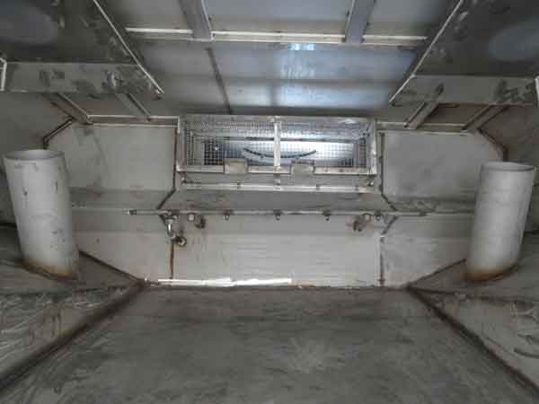 12)、整車外型采用折筋結構,有效減輕自重,增強垃圾箱的強度和剛度;整車采用三節(jié)式,前置連接式水箱,中置連接式機倉罩,結構合理,可拆卸,方便維修。