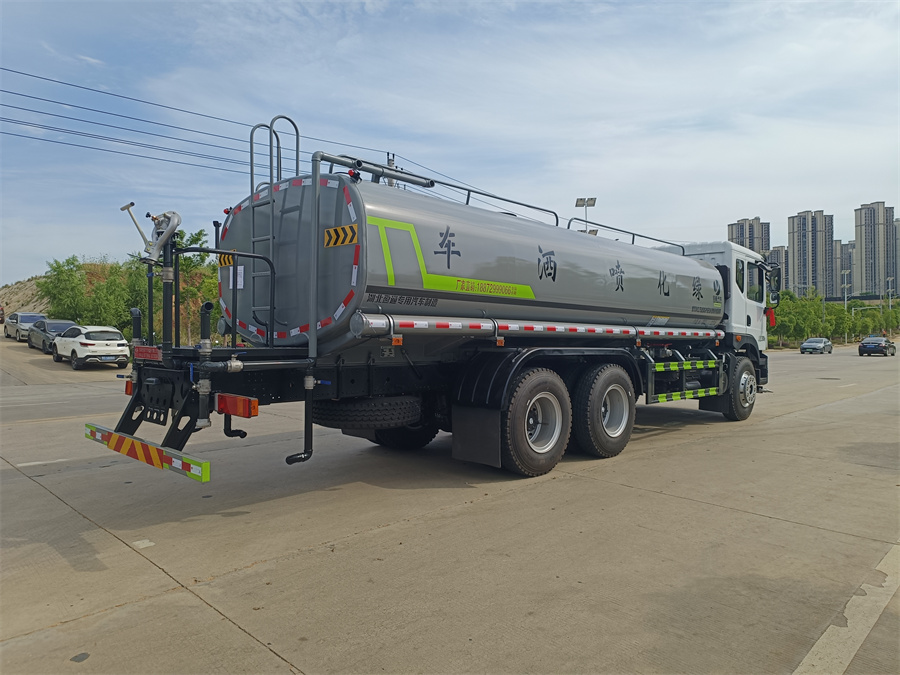 東風20噸灑水車產品標配前噴(鴨嘴)、后沖、后灑、側噴、后置式工作 平臺,平臺上配置綠化水炮(可 360°旋轉,既可以調成柱狀,也可 以調成霧狀,更可以調成直沖狀、大雨、中雨、小雨、毛毛雨),配 備優質大功率專用灑水泵(可自吸自排,可從河里或池塘抽水到罐體), 取力器,雜物過濾網,消防接口,自流球閥系統、取力器、球閥、濾網 均為國家標準產品,主管道加粗,法蘭墊、法蘭盤加厚,大通徑球閥。 整體具備性能優良安全可靠、效率高、流量大、維修方便等特點IMG20240603160859_副本.jpg