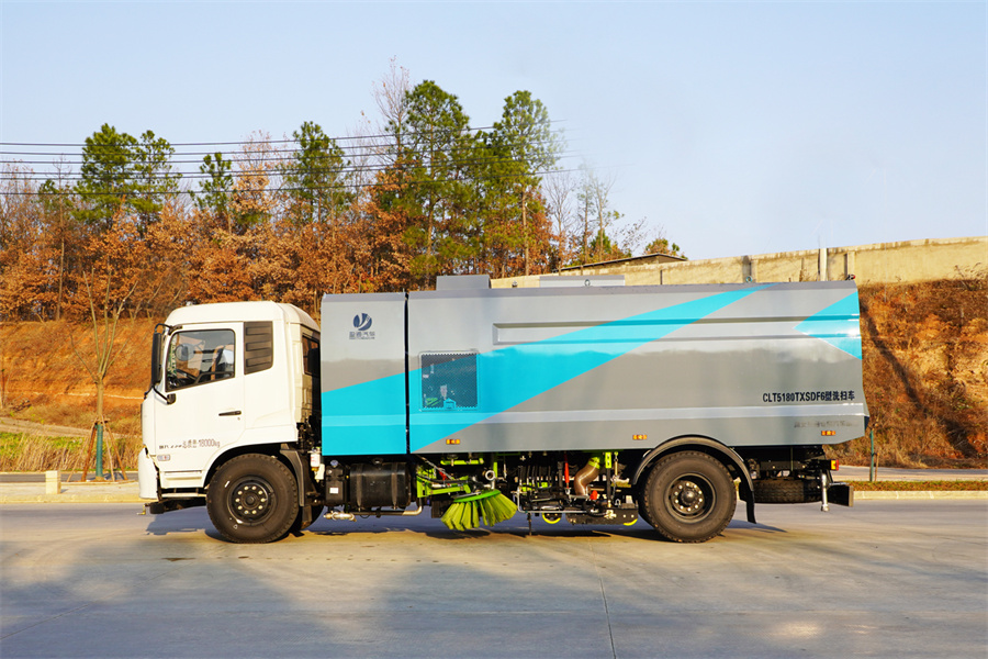 國六東風(fēng)天錦洗掃車采用東風(fēng)天錦DFH1180EX8型底盤,達(dá)到國Ⅵ排放,垃圾箱容積9立方米,水箱容積7立方米,是自動化程度高的道路清掃車