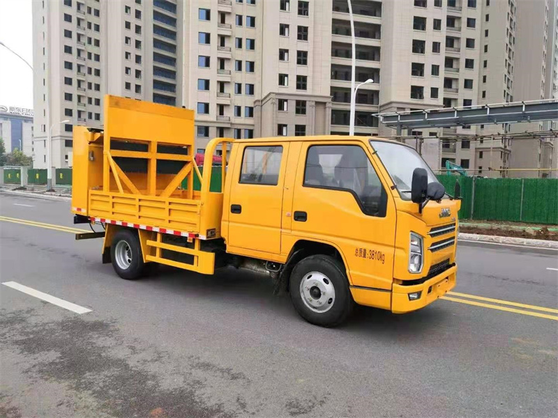 上裝配置:防撞緩沖車尾部設置防撞緩沖塊,防撞緩沖塊采用液壓升降裝置,還配備車載一體化的電子屏、電子箭頭標志牌、頻閃燈及爆閃燈多種警示燈,能夠為后方車輛提供警示和指示方向。箭頭指示標志可對左、右及禁止通行進行導向指示,對道路車輛提供主動安全引導和安全警示,最大限度降低施工對交通流量的影響并確保安全。尾部升降和燈具采用遙控控制,可在車輛附近安全控制防撞緩沖塊的升降和警示燈的開關。