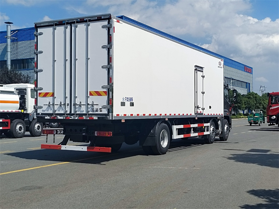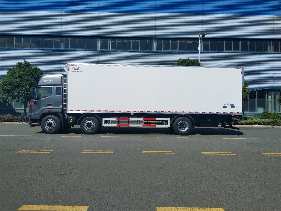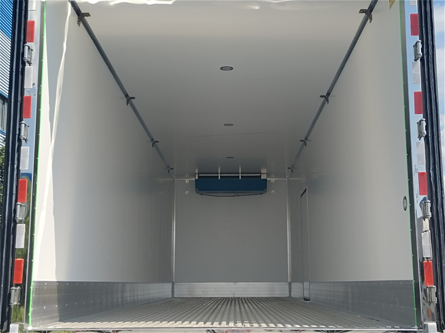 上裝配置:(1)制作工藝:廂體采用真空吸附、液壓吸附一體成型生產線制造,三明治復合粘接,保溫性能達到國家A級標準。