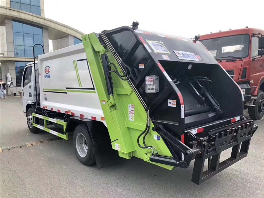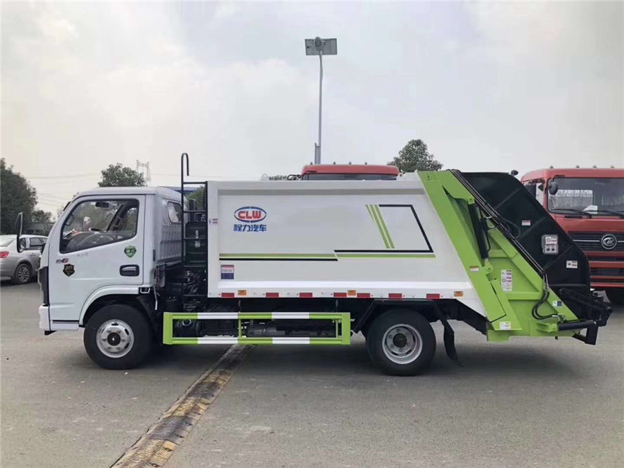 5方壓縮垃圾車上裝配置:新款無筋條箱體,平面圓弧美觀大方,有效壓縮容積8立方,尾部帶翻轉上料機構,電控手動雙操控系統,駕駛室與車尾部雙控制箱,尾部帶3厘米后橡膠密封壓條,帶污水收集槽,大容量污水箱,箱體可按要求噴繪圖案和字樣。