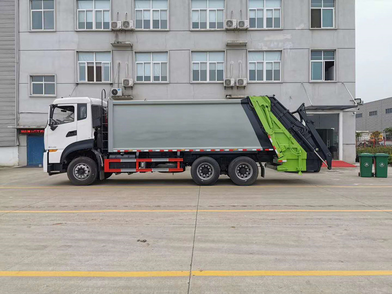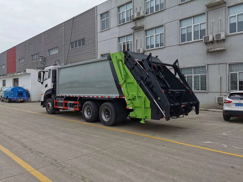 上裝配置:弧形箱體,容積18立方,可裝垃圾16噸,采用特種鋼板制作,箱體底板5mm,邊板5mm,博利油缸,中梅多路閥,長源液壓油泵,填裝器舉升油缸帶液壓鎖裝置,采用進口西門子PLC電控系統(帶一鍵操作,和手動操作兩種控制方式),電控操作盒三只。帶2個污水收集箱,尾部帶橡膠密封條。填充器加裝后照明燈,箱體油漆及噴字按用戶要求定制。