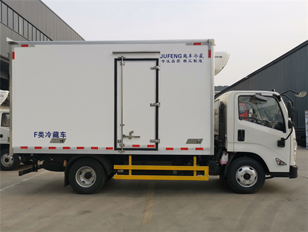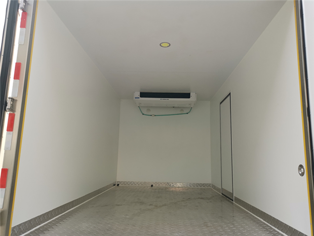 國六江鈴凱運4米2冷藏車廂體配置為:采用斷橋隔熱工藝,整體框架結構制作,廂體內、外壁材料為玻璃鋼板,采用高密度保溫層,廂板內帶有骨架,廂體厚度80mm,門框,門飾件、包角全部使用不銹鋼材質。最新款鋁合金包邊型材,廂體內采用LED照明燈及廂體示寬燈;門框密封條為橡膠材質,后門梁帶加厚防撞塊,加厚型不銹鋼鉸鏈及鎖件。車體副梁采用510L高強度鋼制作,底板為鋁花紋板,車廂后門帶一個上車扶手,其余標配;