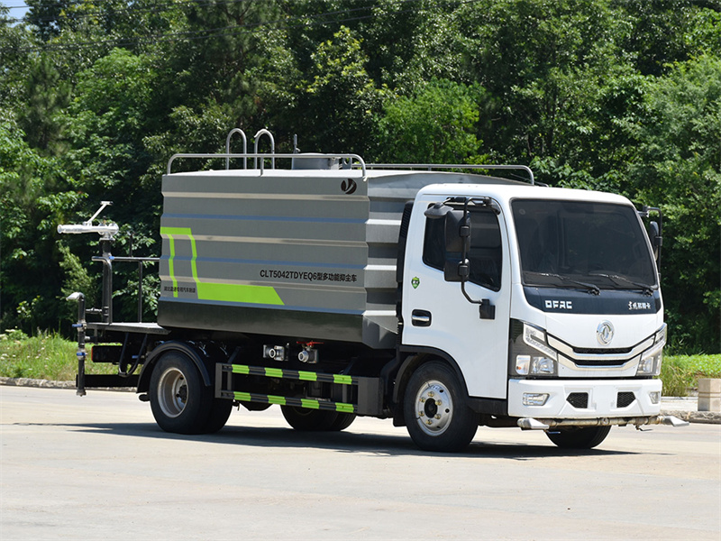 東風7方藍牌灑水車產(chǎn)品簡述:縱昂牌 CLT5042TDYEQ6 型多功能抑塵車標配前噴(鴨嘴)、后對 沖、后灑、側(cè)噴、后置式工作平臺,平臺上配置綠化水炮可 360 °旋轉(zhuǎn),既可 以調(diào)成柱狀,也可以調(diào)成霧狀),配備優(yōu)質(zhì)大功率專用灑水泵(可自吸自排, 可從河里或池塘抽水到罐體),取力器,雜物過濾網(wǎng),消防接口,自流球閥系統(tǒng)、 取力器、球閥、濾網(wǎng)均為國家標準產(chǎn)品,主管道加粗,法蘭墊、法蘭盤加厚,大通徑球閥。整體具備性能優(yōu)良安全可靠、效率高、流量大、維修方便等特點