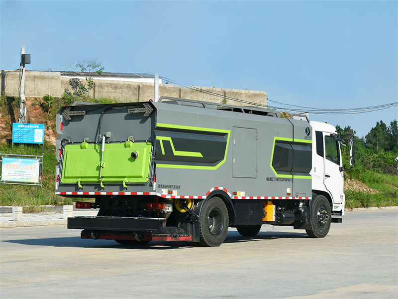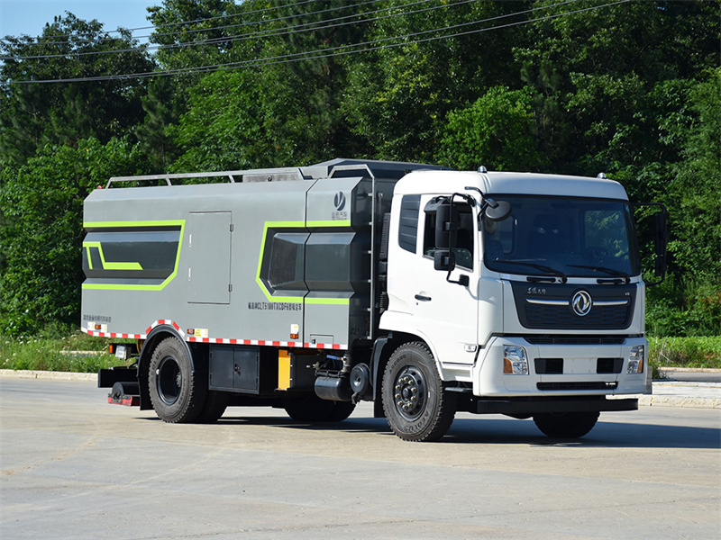 總質量 18000kg 整備質量 10300kg 底 盤 品牌 東風 駕駛室 天錦 型號 B6.2NS6B230 軸距 4700mm 發動機 康機 230 馬力 輪胎 10.00 鋼絲胎 副發動機 康機(140·160·170 馬 力)或者玉柴(140·160 馬力) 水箱容積 3m²上 裝 垃圾箱總容積 13m² 吸塵寬度 2.4m 作業能力 65000-90000m²/h 最大吸入顆粒 100mm 吸凈率 99.3% 作業速度 5-20km/h 垃圾箱卸料角度 45° 選裝 可加裝雪鏟,掃刷等