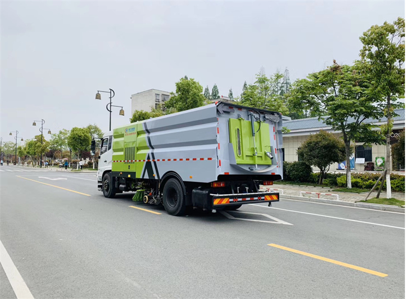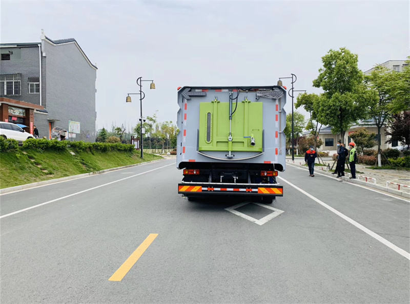 6)具備倒車保護裝置,在作業過程中如遇緊急倒車,智能化的控制系統會自動停止作業并收回掃盤、吸盤和側噴桿;具有防止舉升垃圾箱翻車保護;具有檢修安全保護。