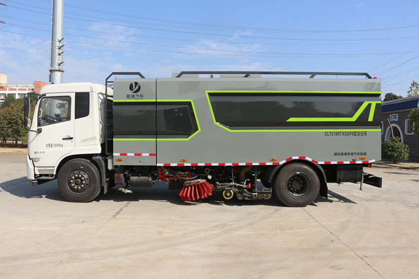 1.CLT5180TXSD6型洗掃車適用于城市道路、高速公路、廣場、機(jī)場、碼頭、遂道、橋梁、隔離墻避、路緣和路緣石立面的機(jī)械化清洗、清掃、噴霧降塵等清潔作業(yè)。具有路面清洗、路面清掃、路緣清洗、路緣和路緣石立面洗刷、低壓沖洗、噴霧除塵等多功能。有“全洗掃”、 “右洗掃”、 “全掃”、 “右掃”4種作業(yè)模式可選擇。選擇“全洗掃”模式清洗廣場和路面,清洗效率高效果好,洗凈率達(dá)90%以上。選擇“左洗掃”或“右洗掃”模式清洗路面和路緣、洗刷路緣石立面。需要進(jìn)行路面清掃或路面保潔作業(yè)時(shí),可選擇掃路模式。需要噴霧除塵時(shí),可開啟噴霧裝置,進(jìn)行噴霧除塵作業(yè)。可以像灑水車一樣對路面進(jìn)行低壓沖洗作業(yè)。