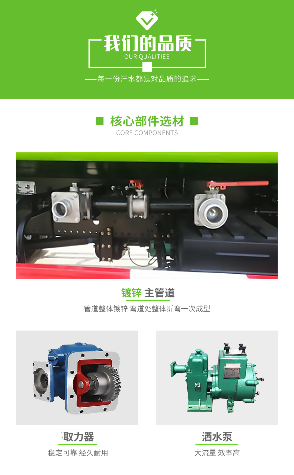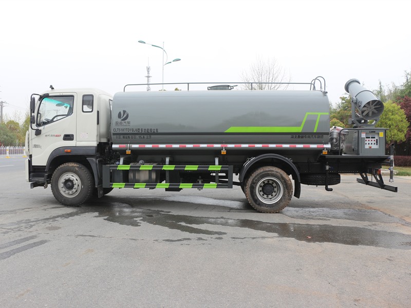 專用功能配置:罐體實際容積16立方米,公告有效參數15.8立方米、額定載質量9805KG/采用武鋼優質碳鋼板卷壓成型配備專用灑水泵,自吸自排前噴后灑側噴后工作平臺及灑水高壓炮灑水泵自吸高度為6米左右,整車灑水寬度14米左右,后工作平臺水炮可調成:直沖狀大雨中雨小雨毛毛雨,有效射程28,整車帶接頭水位計,自流閥后工作平臺主管路帶1寸澆花接口,附送23米水管,1個爬梯,兩側及后保險杠。