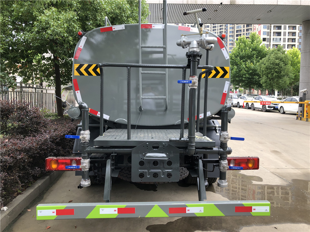 • 東風(fēng)華神T1灑水車專用功能配置:罐體實(shí)際容積約為9.35立方米,采用武鋼優(yōu)質(zhì)碳鋼板卷壓成型。配備專用灑水泵,自吸自排,前噴后灑、側(cè)噴、后工作平臺(tái)及灑水高壓炮。灑水泵自吸高度為6米左右,整車灑水寬度14米左右,后工作平臺(tái)水炮可調(diào)成:直沖狀、大雨、中雨、小雨、毛毛雨,有效射程≥28米,整車帶接頭、水位計(jì),自流閥。后工作平臺(tái)主管道有一個(gè)一寸的澆花接口,附送2根3米水管,1個(gè)爬梯,兩側(cè)及后保險(xiǎn)杠。