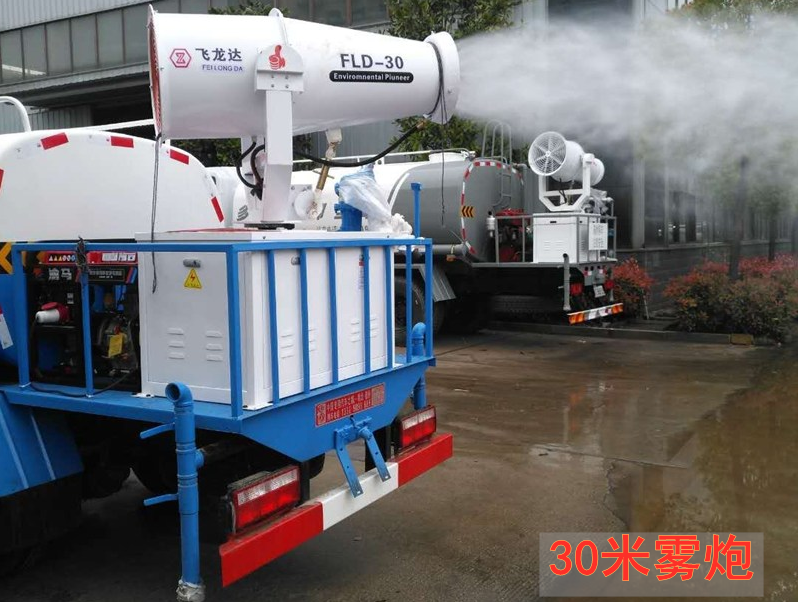 3、后平臺可加裝30米、40米全自動柴油霧炮機組;可噴灑農藥,防役消毒,工地噴霧,拆遷降塵多功能使用。