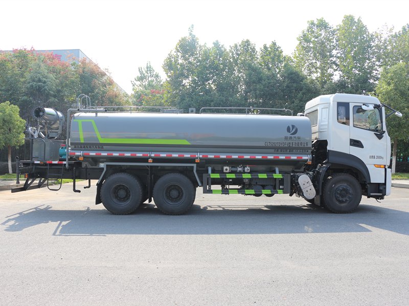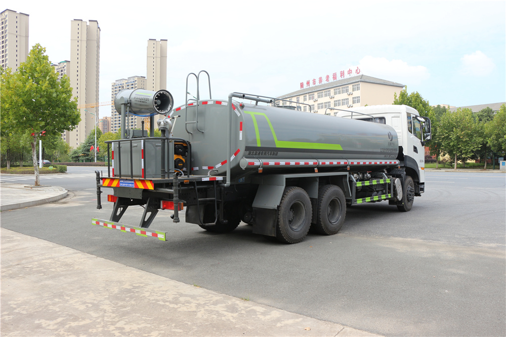 專用功能配置:罐體容積23立方米,公告有效參數18.6立方米采用武鋼優質碳鋼板卷壓成型配備專用灑水泵,自吸自排,前噴后灑側噴后工作平臺及灑水高壓炮灑水泵自吸高度為6米左右,整車灑水寬度14米左右,后工作平臺水炮上下左右360度旋轉可調成:直沖狀大雨中雨小雨霧狀有效射程28,整車帶接頭水位計,自流閥后工作平臺主管路帶1寸澆花接口,附送23米水管,1個爬梯,兩側及后保險杠。