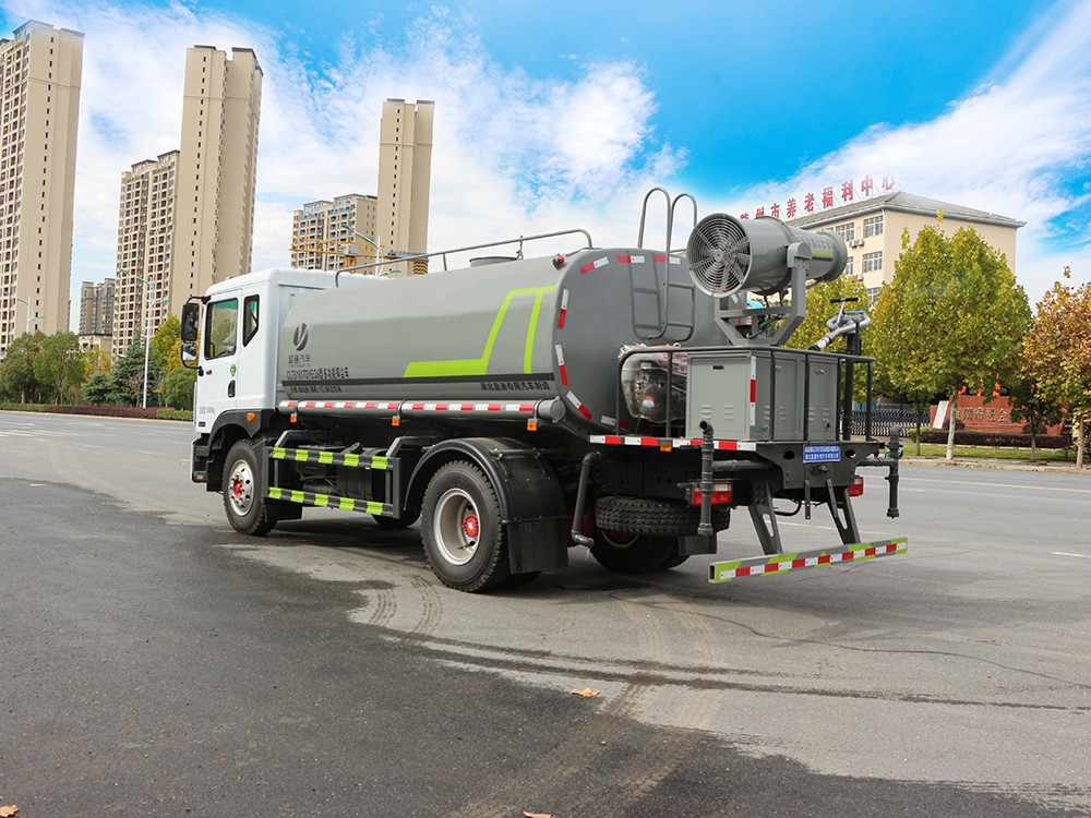 15方灑水車上裝配置: 1、罐體約為 14.2 方, 2、邊燈帶電,罐體尾部上方標配 2 個紅色示寬燈, 3、標配前噴為鴨嘴直沖,標配后沖,用戶可根據自己的需求,來調 整對沖位置。 4、沖孔平臺(承載能力加強),炮筒后蓋為定制型螺栓卡扣, 5、前噴、后沖、后灑、側噴,綠化高炮開關球閥均采用 50 大通經 不銹鋼球閥, 6、新式軸承式水炮,更加耐用, 7、60-90 型水泵, 8、防腐法蘭墊片, 9、鋁制后灑,不易炸開 10、罐體自動焊(美國林肯焊機及電源),拼板自動焊接,封頭環 縫焊接,無氣孔,焊縫美觀。 11、側護網、后保險杠、均為螺栓連接,方便拆卸,維修方便。 12、塑料擋泥板,替代鐵擋泥板,更加輕便,用螺栓連接,方便拆 卸。 13、前部、后部主管連接處為 6 孔圓法蘭,不易沖墊