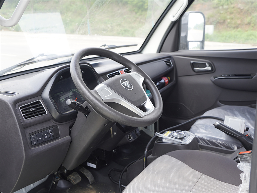 電動自裝卸式垃圾車該車專用裝置為垃圾箱體、提升機構,主要用于垃圾的收集和轉運;整車長/后懸對應關系(mm):5340/1410,5120/1190;側防護材料為:Q235碳鋼,連接方式為螺栓連接;后防護由專用裝置代替,后部防護離地高度(mm):300;蓄電池為磷酸鐵鋰蓄電池,成箱后的儲能裝置總成型號:L173TB3,儲能裝置總成生產企業:寧德時代新能源科技股份有限公司,儲能裝置單體型號:CB220,儲能裝置單體生產企業:寧德時代新能源科技股份有限公司;驅動電機類型為永磁同步電機,型號為FTTBP075B,額定功率為45kW,峰值功率為90kW,生產企業為北汽福田汽車股份有限公司;ABS型號是YF9,生產企業是武漢元豐汽車電控系統有限公司,選裝ABS型號是CM4YL,生產企業是廣州瑞立科密汽車電子股份有限公司;該車型可選裝直接供電式ETC車載裝置;該車整備質量不包含備胎,滅火器和隨車工具;貨箱質量為:1430kg;貨箱材質為:Q235鋼板,底板厚度為3mm,前板、后板、頂板、側板厚度均為2mm;選裝車輛側面樣式。隨底盤選裝logo