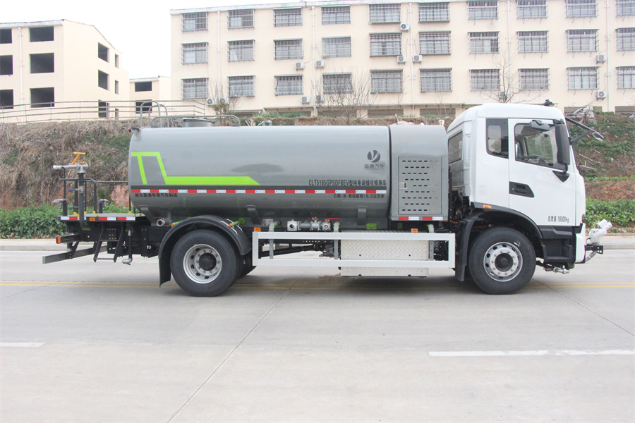 東風天錦12方電動灑水車該車主要用于城鄉園林綠化,路面噴灑;主要裝置為罐體及噴灑裝置;罐體總容量:9.77立方米;罐體有效容積9.3立方米;罐體外形尺寸(長×長軸×短軸)(mm):4000×2300×1540;側防護材料為鋁合金+Q235碳鋼,連接方式為螺栓連接;后防護材料為:Q235碳鋼,連接方式為:螺栓連接;后部防護截面尺寸(mm):120×50,后部防護離地高度(mm):480;儲能裝置種類/儲能裝置單體及總成生產企業:磷酸鐵鋰電池/寧德時代新能源科技股份有限公司/寧德時代新能源科技股份有限公司;磷酸鐵鋰電池/瑞浦蘭鈞能源股份有限公司/瑞浦蘭鈞能源股份有限公司;ABS型號/生產企業:J ABS/焦作博瑞克控制技術有限公司,選裝EBS,EBS型號及生產廠家:EBS5/東科克諾爾商用車制動系統(十堰)有限公司,該EBS包含ABS功能;驅動電機類型:永磁同步電機,電機①型號/生產企業:TZ220XY201/精進電動科技股份有限公司,額定功率100kW,峰值功率200kW;電機②型號/生產企業:TZ410XS-LKM2806/蘇州綠控傳動科技股份有限公司,額定功率128kW,峰值功率260kW;選裝前部電子水炮樣式;選裝前部不帶電子水炮,該狀態下車長為8540mm,8110mm;當前部安裝電子水炮時,車長為9040mm,8610mm,車輛前伸500mm;選裝噴灑裝置樣式。