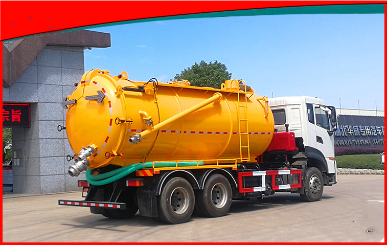 上裝為一體式罐體結(jié)構(gòu),分污水罐和清水罐兩部分,采用優(yōu)質(zhì)碳鋼制作而成,罐體厚度為8毫米,罐體內(nèi)部均安裝有爬梯,底部焊有1.6米左右的不銹鋼底板,罐體外部也安裝有爬梯。清水罐頂部安裝有排氣閥,底部安裝有排水閥。清洗部分選用350大流量高壓泵,雙向進(jìn)水,帶氣吹水功能,高壓泵安裝有過濾網(wǎng),標(biāo)配100米高壓管,后封頭8毫米厚,尾部液壓絞盤可旋轉(zhuǎn)180度,加裝有節(jié)流閥,用于控制快慢。整車上裝搭配有420馬力副發(fā)動(dòng)機(jī),標(biāo)配大型水循環(huán)泵,搭配不銹鋼水循環(huán)泵水箱,吸污管標(biāo)配長度為10米。后封頭標(biāo)配有6寸球閥1個(gè),4寸球閥3個(gè),直徑600mm的液壓開啟蓋,方便排放污水,罐體帶液壓舉升功能,排污快捷方便。