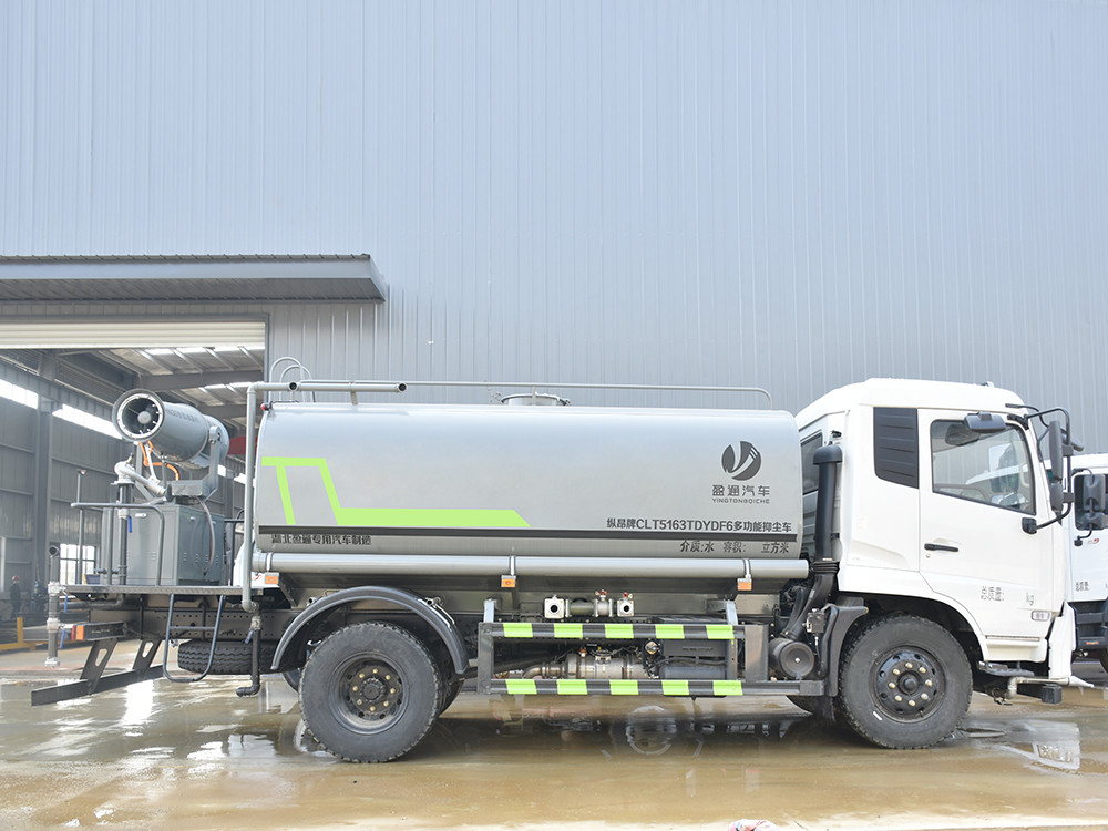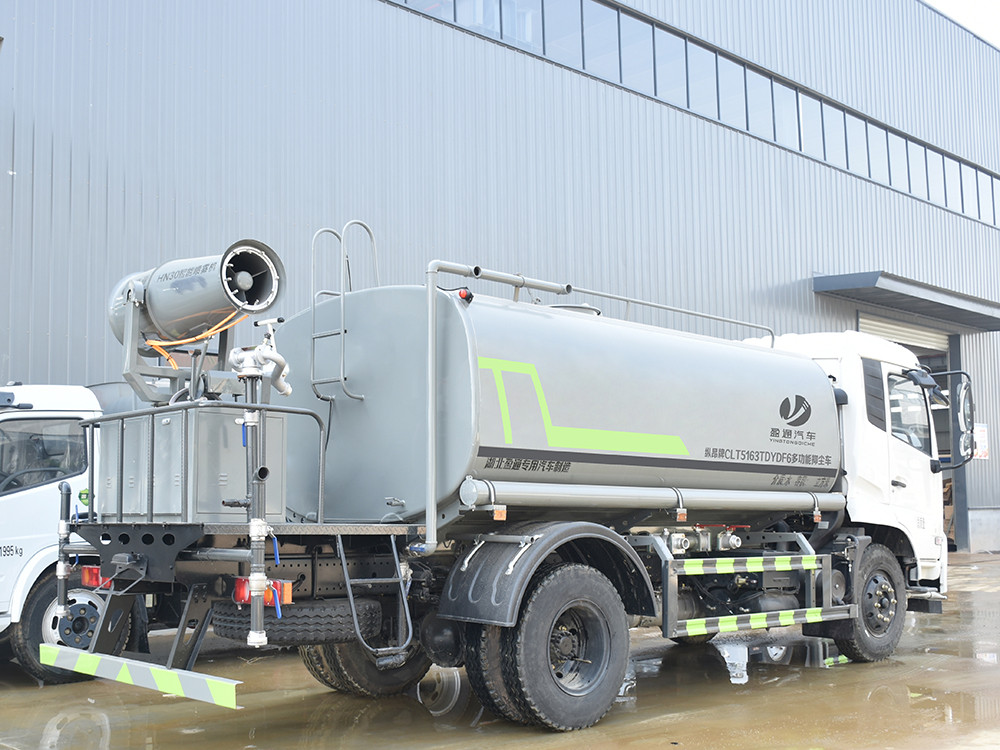 東風天錦12方抑塵車產品配置 1.底盤配置: 發動機康明斯 230 馬力(六缸),法士特 8 檔變速箱,D530 排 半標準頂,4.5T 前橋,9T 后橋 10.00 鋼絲胎,軸距 4700,斷氣剎, 空調,電動玻璃。2.上裝配置: 1、罐體約為 12 方,可加裝 30-40 型霧炮 2、邊燈帶電,罐體尾部上方標配 2 個紅色示寬燈, 3、標配前噴為鴨嘴直沖,標配后沖,用戶可根據自己的需求,來調 整對沖位置。 4、花紋防滑平臺,炮筒后蓋為定制型螺栓卡扣, 5、前噴、后沖、后灑、側噴,綠化高炮開關球閥均采用 50 大通經 不銹鋼球閥, 6、新式軸承式水炮,更加耐用, 7、60-90 型水泵, 8、防腐法蘭墊片, 9、鋁制后灑,不易炸開 10、罐體自動焊(美國林肯焊機及電源),拼板自動焊接,封頭環 縫焊接,無氣孔,焊縫美觀。 11、側護網、后保險杠、均為螺栓連接,方便拆卸,維修方便。 12、塑料擋泥板,替代鐵擋泥板,更加輕便,用螺栓連接,方便拆 卸。 13、前部、后部主管連接處為 6 孔圓法蘭,不易沖墊