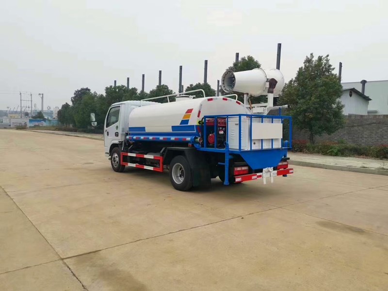 罐體容積:5立方,罐體采用機器壓板一次性成型技術(shù),罐體加厚至4mm,采用先進旋邊機,罐體包罐機工藝保證了罐體制作的精度和美觀。全國獨有烤漆工藝,防腐除銹,多層底漆、面漆噴涂。 功能齊全,配備前沖、后灑、側(cè)噴、綠化高炮,采用優(yōu)質(zhì)水泵,合理設(shè)計水路管道,氣控取力器,作業(yè)能力強,提高了車輛的使用效率。