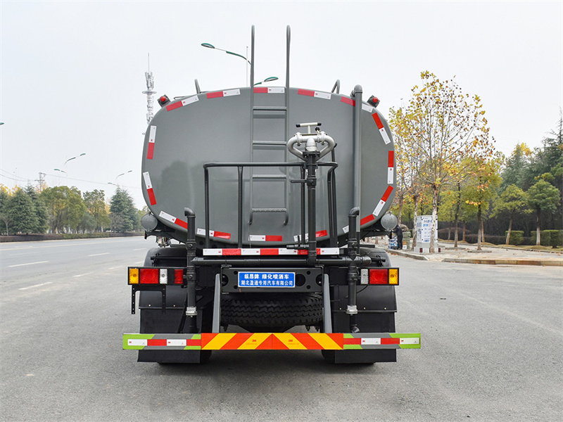 福田新款12-15噸灑水車產品標配前噴(鴨嘴)、后沖、后灑、側噴、后置式工作 平臺,平臺上配置綠化水炮(可 360°旋轉,既可以調成柱狀,也可 以調成霧狀,更可以調成直沖狀、大雨、中雨、小雨、毛毛雨),配 備優質大功率專用灑水泵(可自吸自排,可從河里或池塘抽水到罐體), 取力器,雜物過濾網,消防接口,自流球閥系統、取力器、球閥、濾網 均為國家標準產品,主管道加粗,法蘭墊、法蘭盤加厚,大通徑球閥。 整體具備性能優良安全可靠、效率高、流量大、維修方便等特點