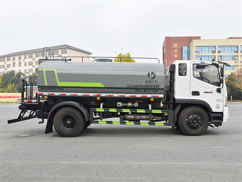 該車主要用于城鄉園林綠化,路面噴灑,除塵和降溫;主要裝置為水罐及噴灑裝置;罐體有效容積:9.7立方米;罐體外形尺寸(長×長軸×短軸)(mm):4200×2300×1450;側、后防護材料均為:Q235碳鋼,連接方式均為:螺栓連接,后部防護截面尺寸(mm):120×50,后部防護離地高度(mm):460;ABS型號為CM4XL-4S/4M,生產廠家為廣州瑞立科密汽車電子股份有限公司.隨底盤選裝駕駛室。